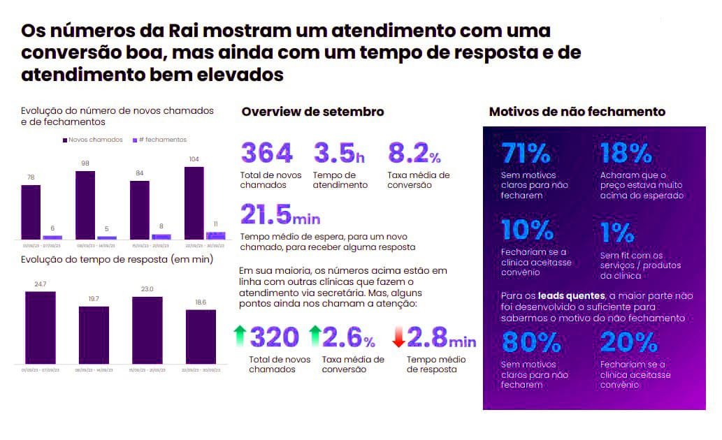 Semana em que analisamos a performance das secretárias. Traremos dados e exemplos reais de bons e maus atendimentos, para feedback da equipe.
